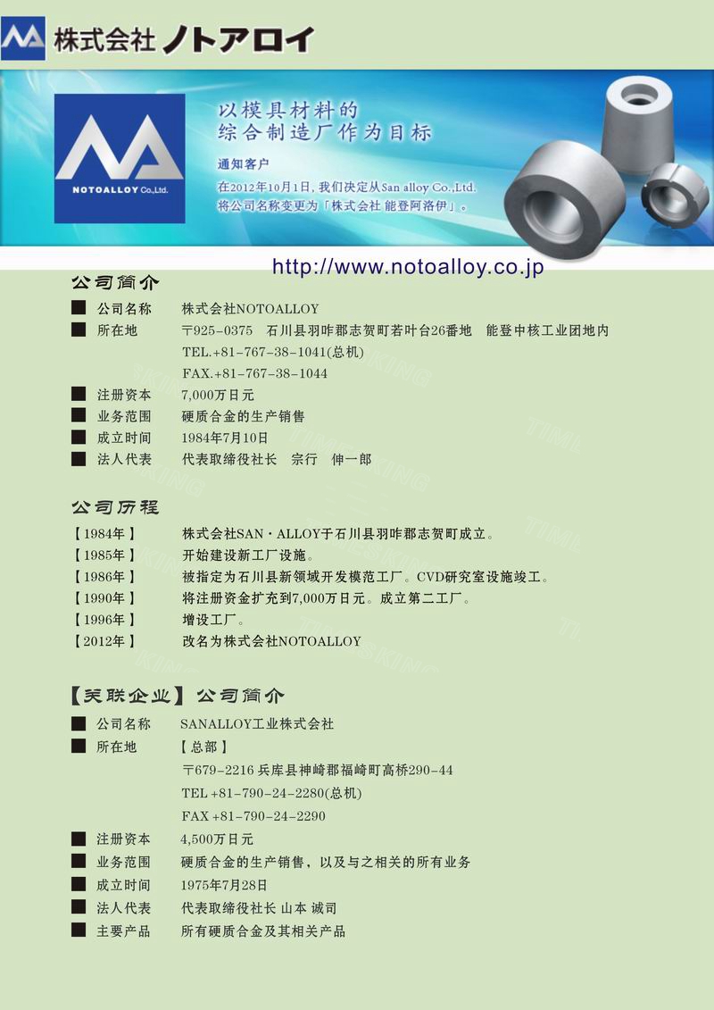 日本株式會社NOTOALLOY和SANALLOY工業(yè)株式會社的關(guān)系